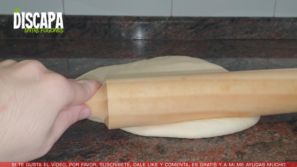 2 Cuando ya tenemos una masa compacta y uniforme que no se pegue en las manos la estiramos con la ayuda de un rodillo.