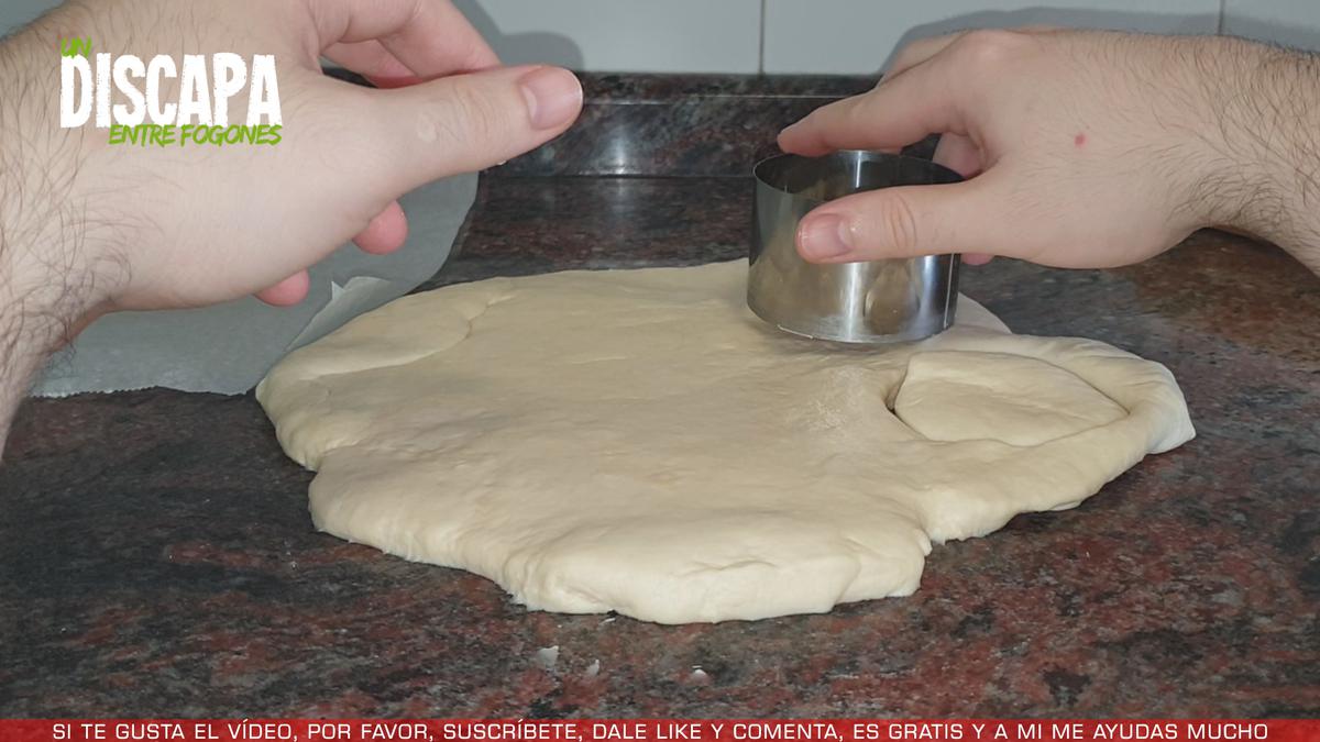 3 Ahora con la ayuda de un corta pastas cortamos unos círculos, si no tienes un corta pastas como este puedes hacerlo perfectamente con un vaso.