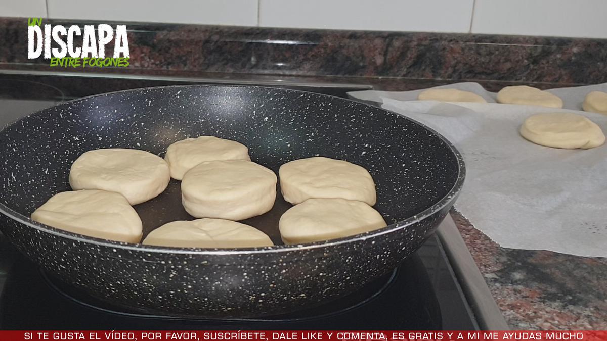 4 A continuación calentamos una sartén y cuando coja temperatura añadimos los panes, no es necesario añadir ni aceite ni nada.
