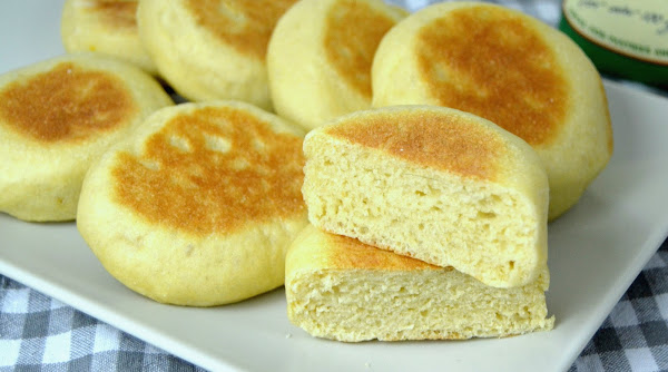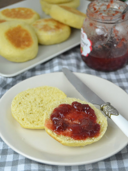La receta original es la de los muffins ingleses, esos panecillos que son la base de los famosos huevos benedictinos pero adaptada para hacerla, si se puede, aun más sencilla.