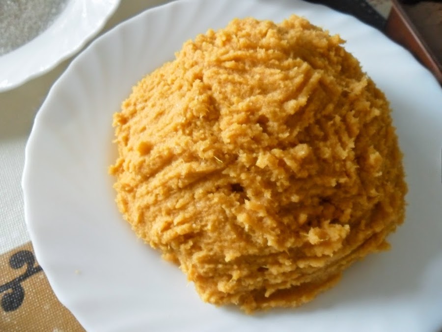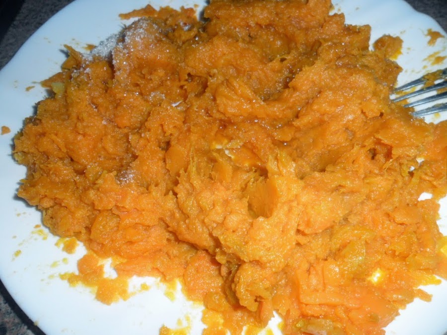 Cocer con la piel los boniatos, una vez este paso, dejar templar, pelar y con un tenedor lo trituramos.