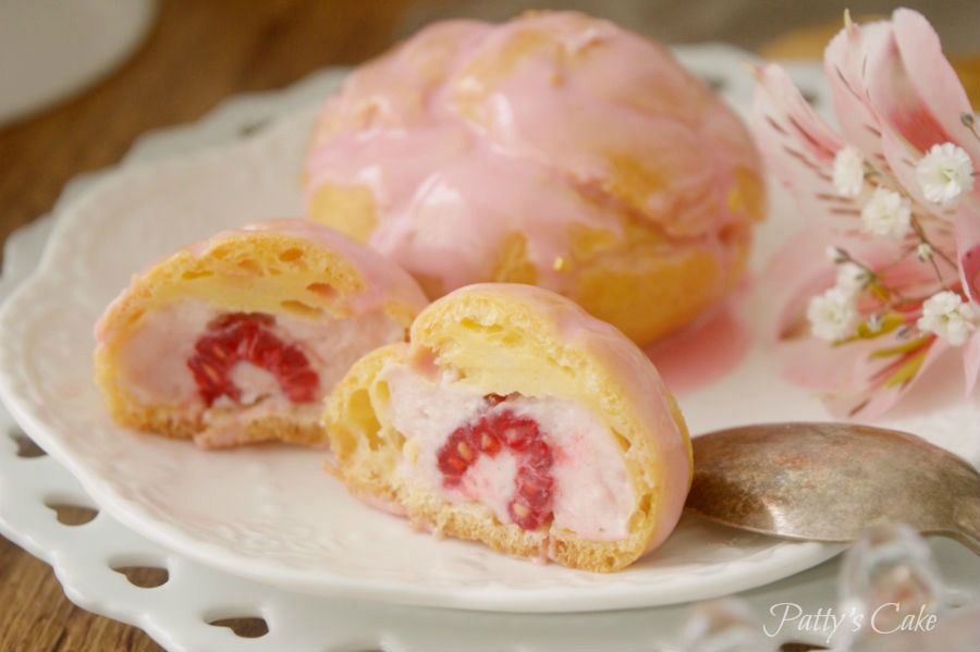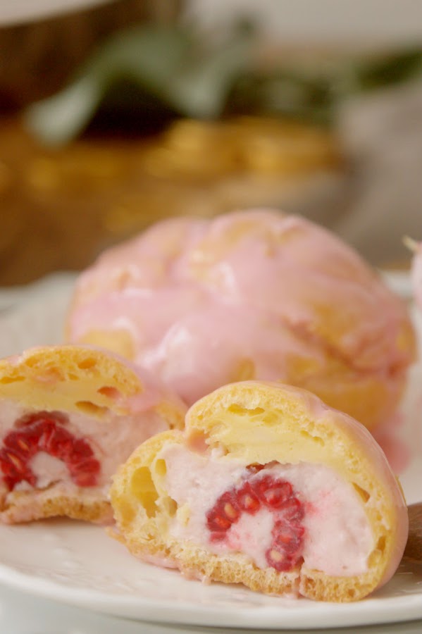 Y ya que llevaba mal lo de esta receta porque cuando terminé mis profiteroles me di cuenta que la crema de dentro tenía que dejarla 6 horas en la nevera, pues más me atrasé. Esta noche estoy corriendo para dejarla lista. Espero que por lo menos os guste. La glasa quedó demasiado líquida, la próxima mejor con chocolate, pero es ver la crema y las frambuesas y hacérseme la boca agua. ¿Y a ti?