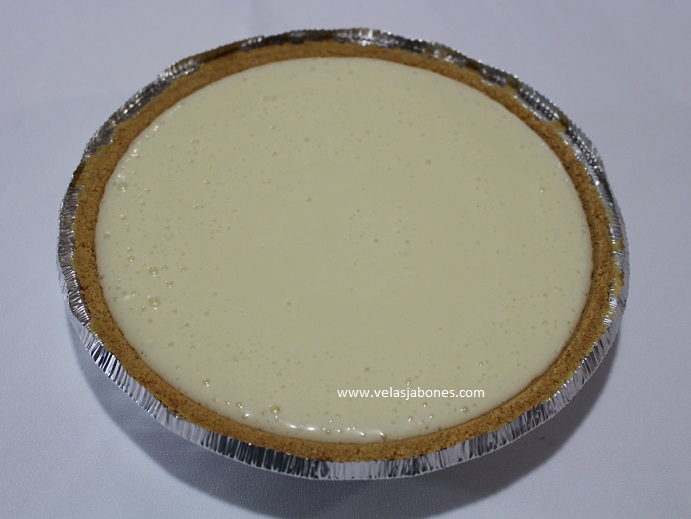 Verter la mezcla en la corteza de galletas para Pie y coloque la tarta en la nevera hasta que adquiera consistencia.