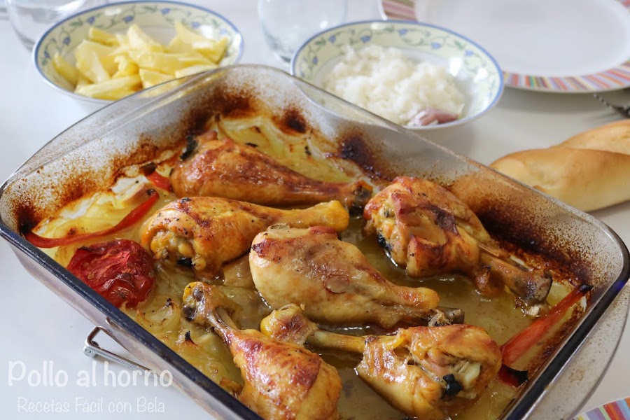 Hoy te traigo una receta muy fácil de hacer pollo al horno, lo acompaño de arroz y patatas pero también puedes preparar una ensalada.