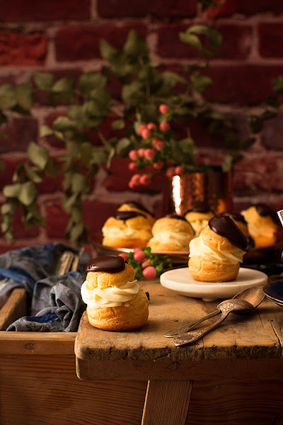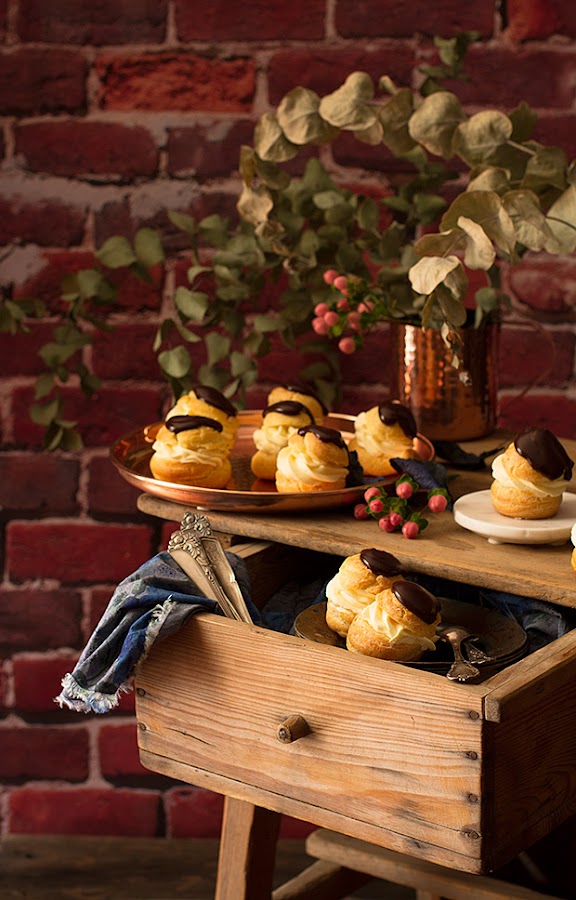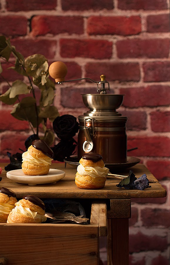 En España estamos acostumbrados a ver los profiteroles rellenos de nata montada (crema de leche) o de crema pastelera, pero lo cierto es que el relleno auténtico de los profiteroles es la crema diplomática.