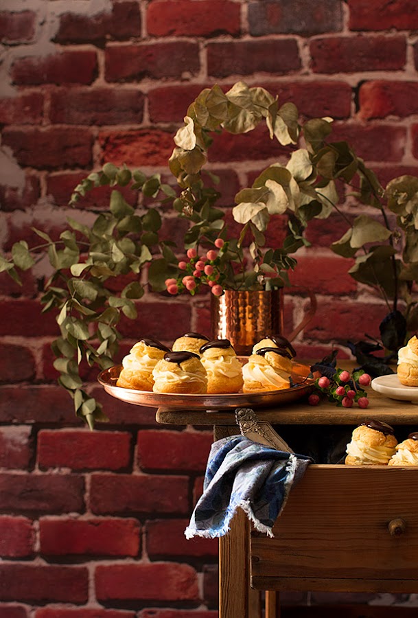 Una vez fríos cortamos el copete con un cuchillo de sierra para proceder al relleno. Para la crema diplomática