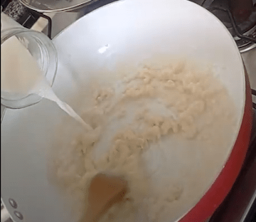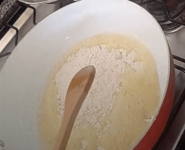 Agregar la harina de a poco a fuego bajo y revolver hasta formar una pasta, esto se llama Roux