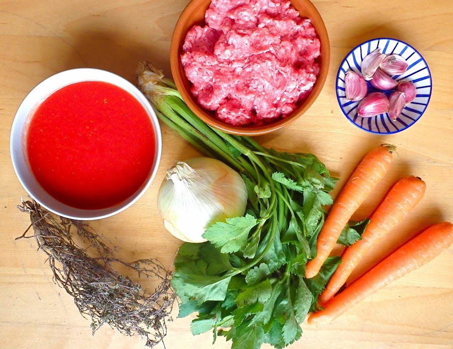 1/2 kg de carne picada, mitad cerdo, mitad ternera