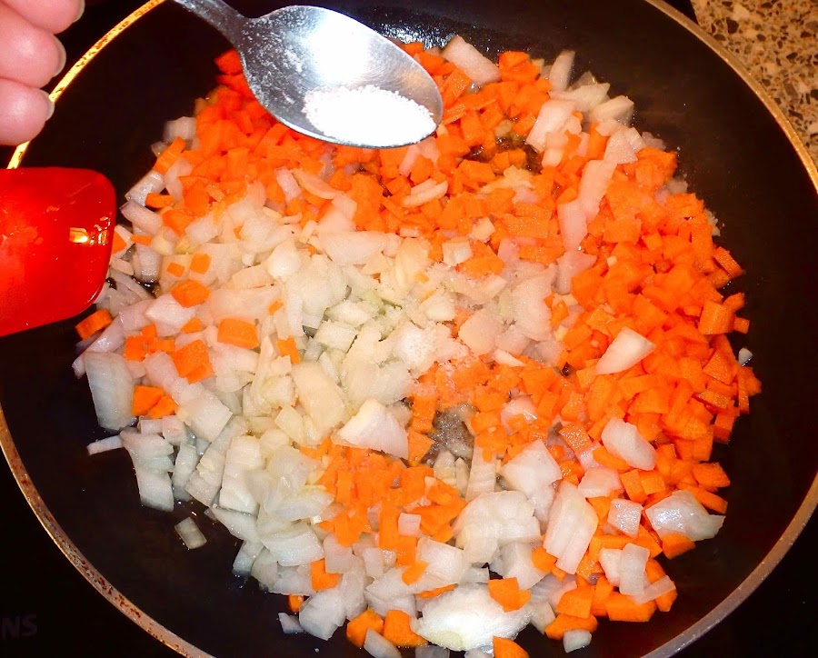 Yo lo hago así para ahorrar tiempo, pero la manera tradicional es añadir la carne a la sartén con las verduras una vez estas ya están hechas y antes de añadir el tomate. La verdad es que haciéndolo de mi manera no afecta al sabor final y ahorras tiempo, aunque tienes un cacharro más que fregar! jejeje