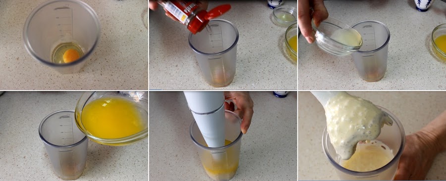 Después añadimos el zumo de limón y la mantequilla. Comenzamos a batir con la batidora sin moverlo demasiado y poco a poco veremos que va espesando, cuando esté montada la retiramos a un bol.