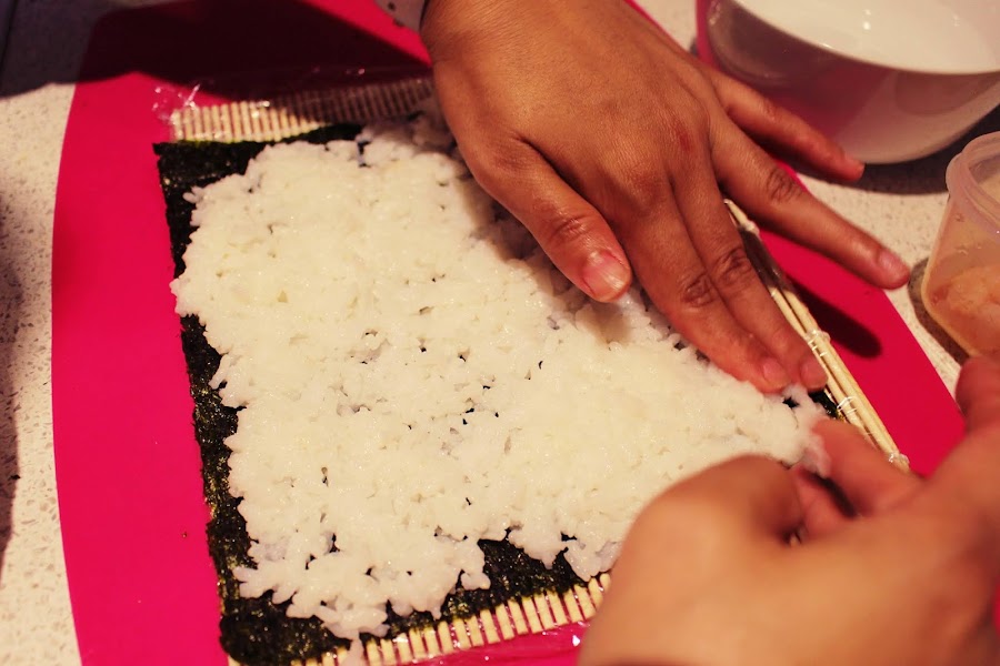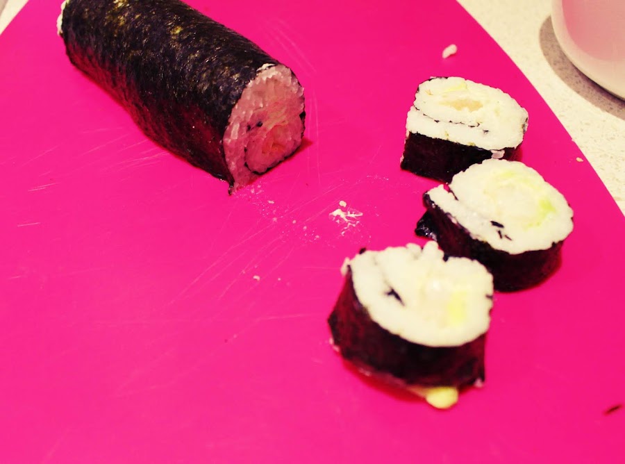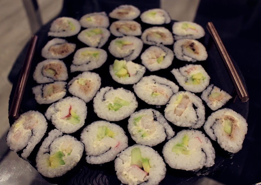 Les contare brevemente un poco de la primera ves que hice sushi, fue en Mexico me hice un curso en una tienda japonesa el chef hablaba poco español y poco ingles así que fue un poco confuso todo. En clase fue muy bien pero cuando me vi en casa con los mismos ingredientes no, sabia como hacerlo me pase de vinagre de arroz, la soya era imposible la alga se me rompía y los rollos me quedaban mas que un sushi era un burrito.