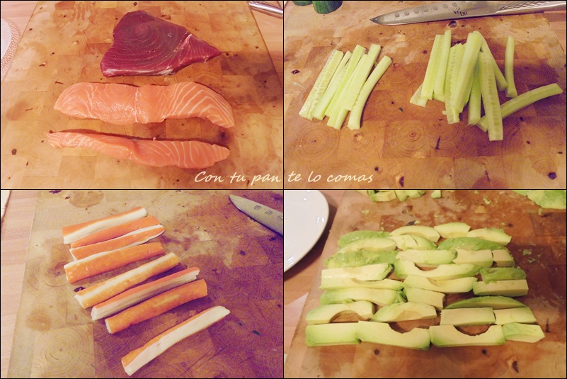 ¿Os apetece cenar sushi? Esto nos preguntan Emilio y Jose Luis unos días antes de nuestra cena de cada mes y entonces confirmo que hemos sido abducidos por los nipones y sus rollitos. Necesitaremos por lo menos tres horas para hacerlo, me dice Emilio, así que quedamos un viernes a las 6 de la tarde, y de verdad que me apetecía muchísimo ver cómo se hacía en vivo y en directo, además de que es mucho más divertido cocinar en compañía. Lo del tiempo me lo tomé un poco a chufla, francamente, pero la realidad es que entre una cosa y otra se nos fueron cuatro horas de nada... casi las mismas que me ha costado preparar esta entrada , así que espero que te encante el sushi y te armes de un poco de paciencia porque tenemos para un ratito.