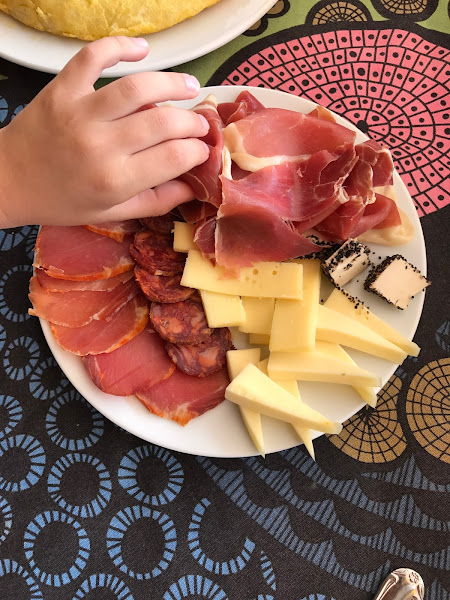 Me gusta acompañarla con alguna tapita más elaborada pero hoy, como teníamos que ir al teatro, ha sido tabla de embutidos y quesos, y pan tumaca.