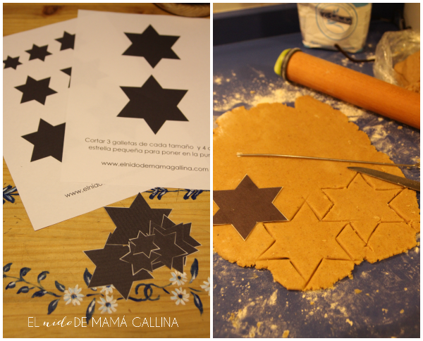 Colocar las plantillas sobre la masa y cortar las estrellas con un cuchillo fino.