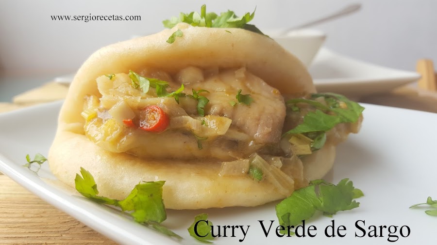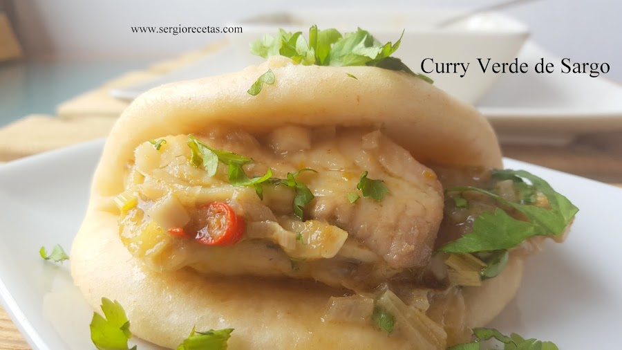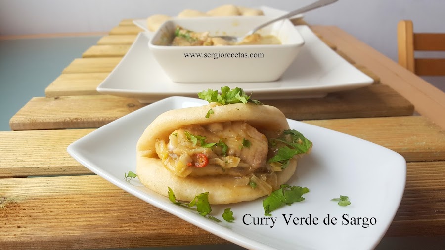 Pasado ese tiempo sólo nos resta servir espolvoreando con bien de cilantro fresco y acompañado de nuestros panecillos de Pan Bao y a disfrutar de este sensacional "Curry Verde de Sargo".