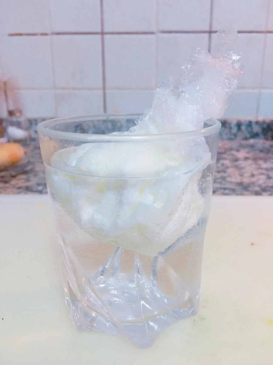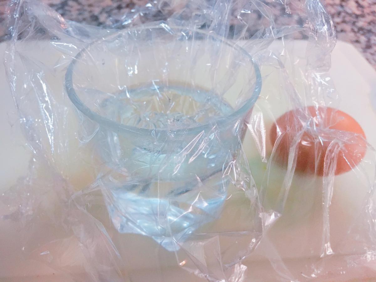3º-Cascamos el huevo y lo colocamos en el plástico del vaso.