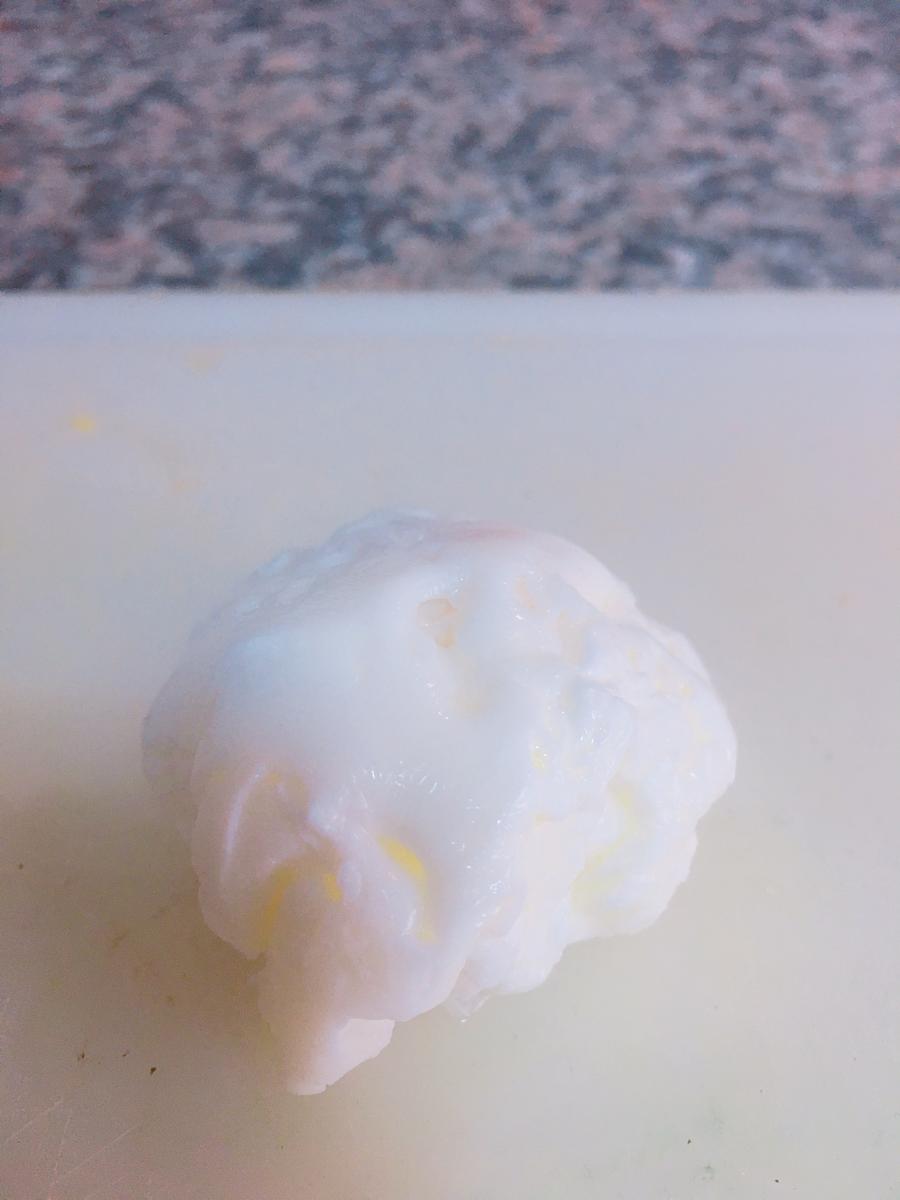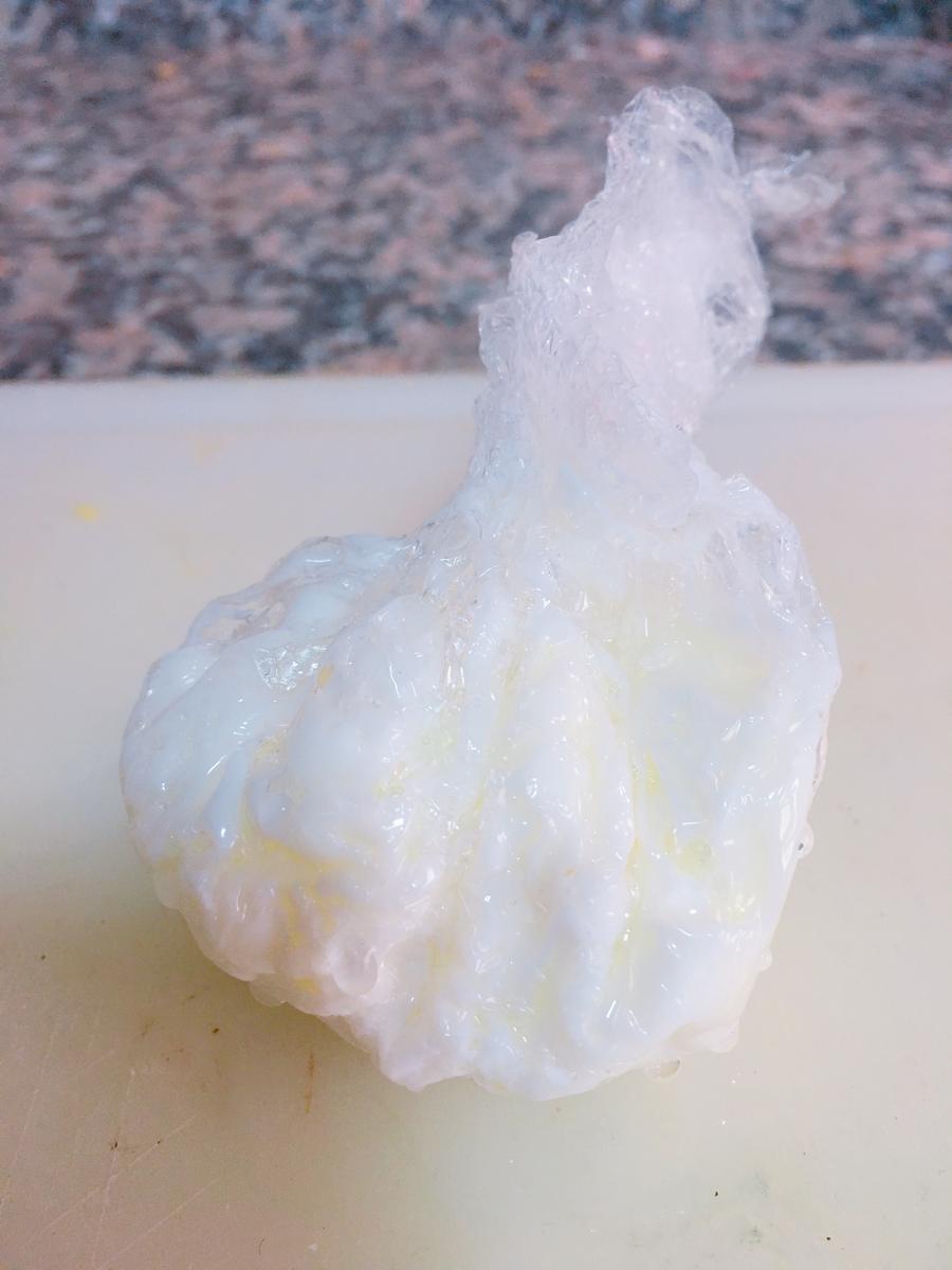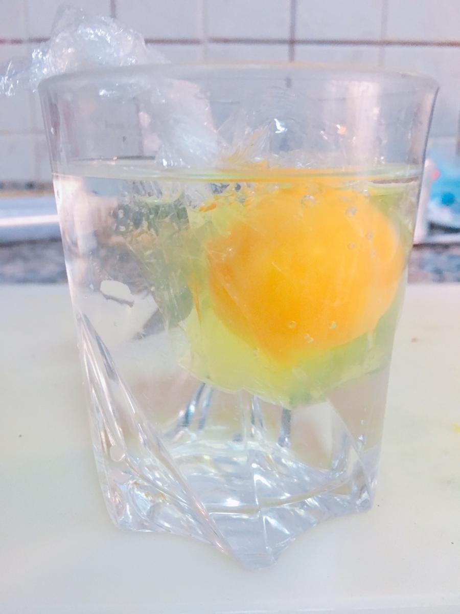6º- Sacamos la bolsita con cuidado para no quemarnos, y desenvolvemos el huevo.