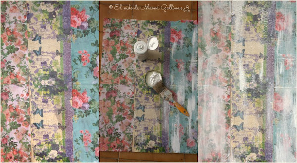 Quería crear un efecto de papel pintado vintage, así que he buscado en internet y he encontrado una página, "Astrid´s Artistic Efforts" con muchos freebies de papeles preciosos que os podéis descargar. La verdad es que busqué en tiendas estos papeles, pero no he encontrado lo que quería, asi que he recurrido a imprimirlo yo misma. También he utilizado unas servilletas de papel muy bonitas que encontré en una tienda.