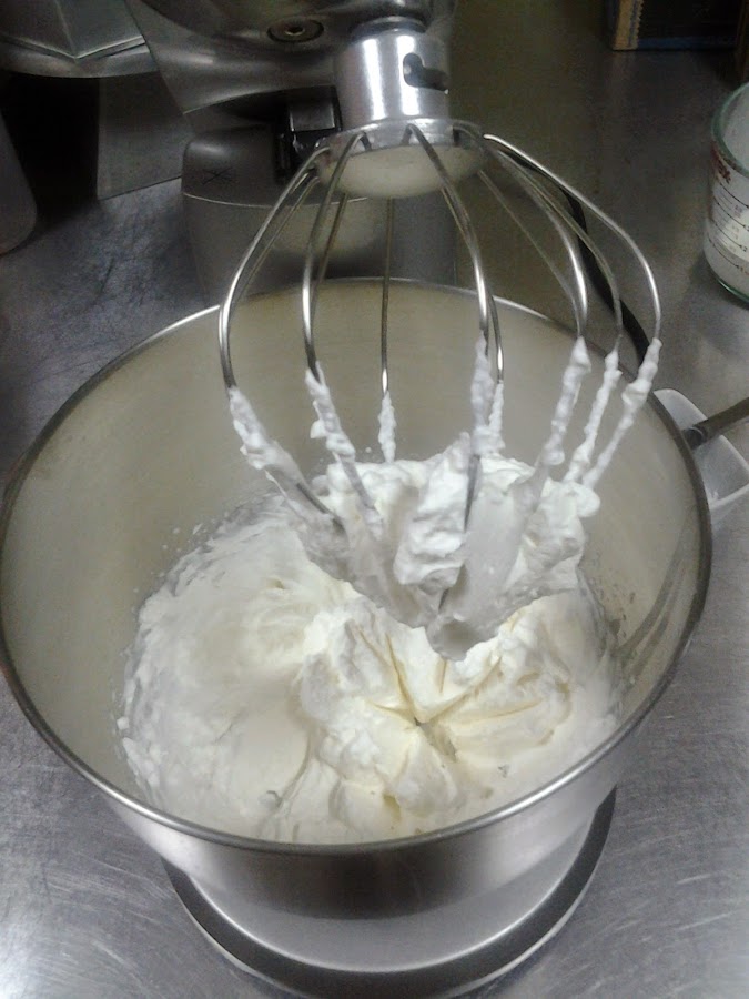 Ahora que tenemos todo helado colocamos la crema de leche (que debe estar refrigerada desde la noche anterior y el azúcar glas en la batidora junto con la esencia o aroma que vayas a usar ) y batimos a velocidad media ,una vez que empieza a tomar cuerpo aumentamos la velocidad .?