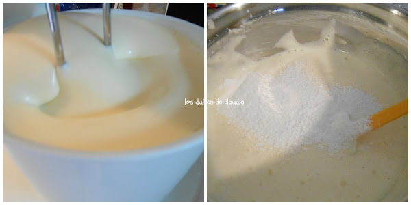 Batir los huevos, cuando estén espumosos ir agregando el azúcar en forma de lluvia.