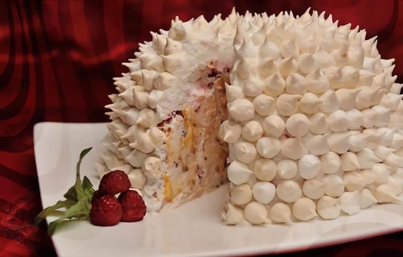 Corte el bizcochuelo en capas, coloque una de las capas en un molde de 20 cm de diámetro, previamente forrado con papel film.