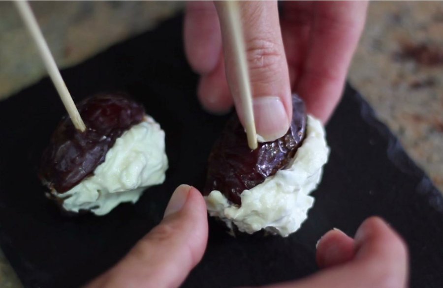 Prepararlo es tan sencillo como mezclar en un cuenco queso crema con un poco de queso azul y usar esa combinación como relleno de unos dátiles que previamente abras abierto longitudinalmente y quitado el hueso. Por si tienes alguna duda de la elaboración, te dejamos el vídeo.