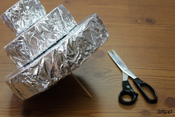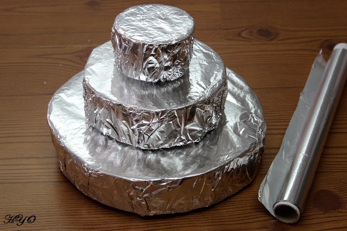 2. El siguiente paso consiste en forrar cada disco con papel de aluminio apto para el contacto con alimentos.