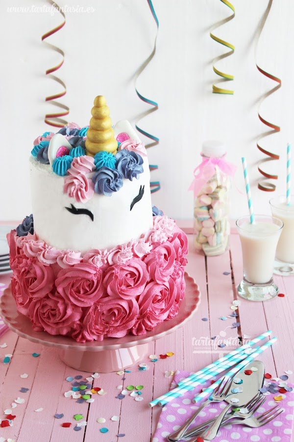 Qué llamativa y alegre es esta tarta, desde hace bastante tiempo quería hacer una tarta unicornio y por fin he encontrado la semana para disfrutar haciéndola.