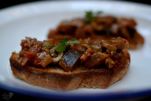 Hola a todos...Hoy os traigo una preparación tradicional italiana de la zona de Sicilia, se tata de una deliciosa caponata cuyos ingredientes básicos son verduras, aceitunas y aceite de oliva, es una especie de pisto y os la presento sobre un pan de pueblo tostado, me encanta como ha quedado esta receta de toda la vida...