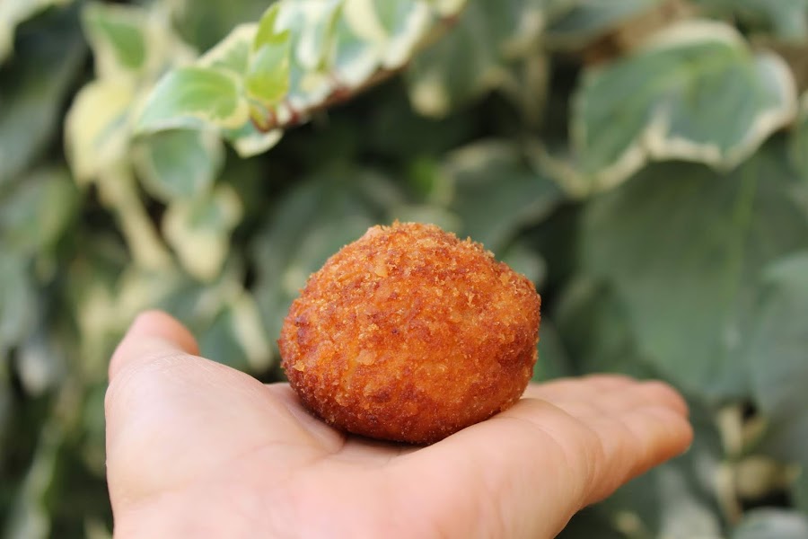7- Cuando esté fría coger la cantidad deseada para formas las bolas de las croquetas, darles forma redonda o alargada, según el gusto de los comensales.