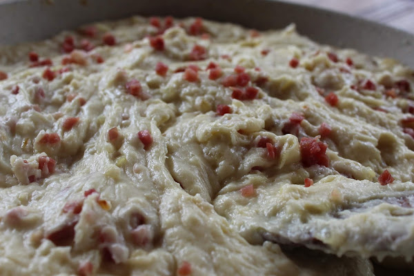1- Cortar la cebolla en trocitos pequeños y sofreírla con un poco de sal, a fuego lento hasta que se queda transparente y melosa, la masa debe de quedar fina, sin tropezones.