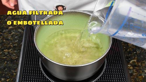 1. En primer lugar, poner a calentar 1 litro de agua (del total de 2) en una olla a fuego alto.* IMPORTANTE: El agua que uses debe ser un agua buena. Mejor que sea embotellada o filtrada. El agua de grifo no suele ser demasiado buena para preparar esta bebida porque podría estropear y dañar a las bacterias y levaduras.