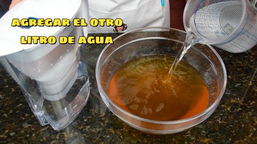 4. Una vez que el té con azúcar haya enfriado del todo, agregar el otro litro de agua que se necesita para esta receta.