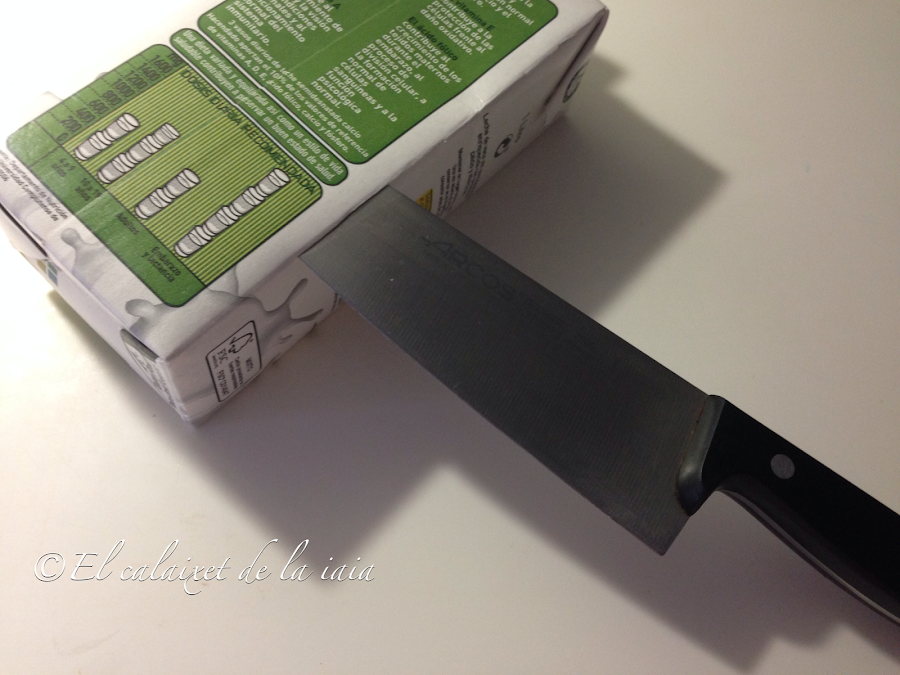 así, aunque si queréis conseguir dos moldos, solo habréis de cortar el brik por la mitad