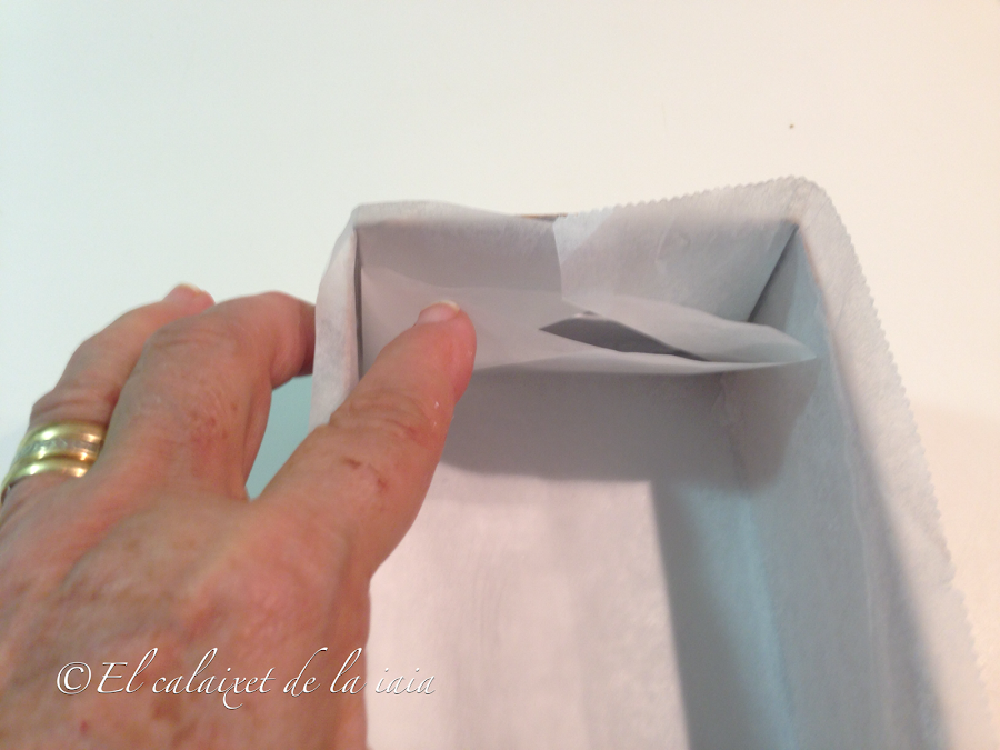 para evitar que el papel del forrado moleste al echar nuestra pasta de turrón echándose hacia delante, podemos poner unas pinzas de la ropa.