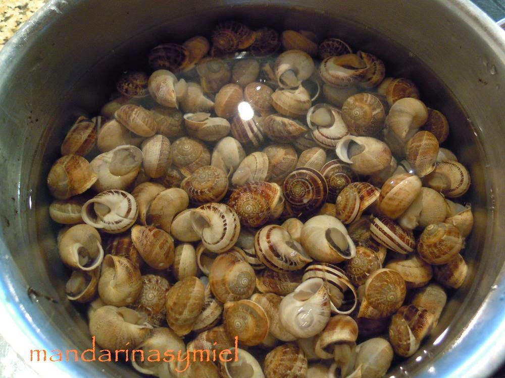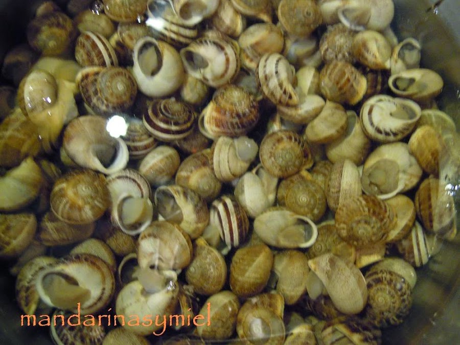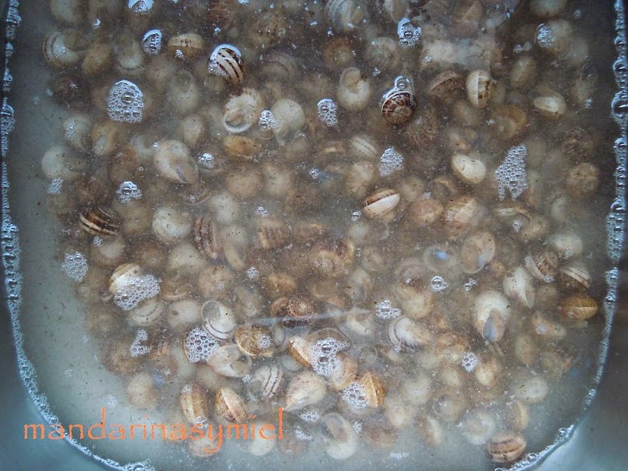Pon los caracoles en una olla con agua fría, déjalos un rato para que se confíen y empiecen a salir, luego pon la olla al mínimo de fuego, hasta que veas que ya han salido todos, tira ese agua y vuelve a poner agua limpia.