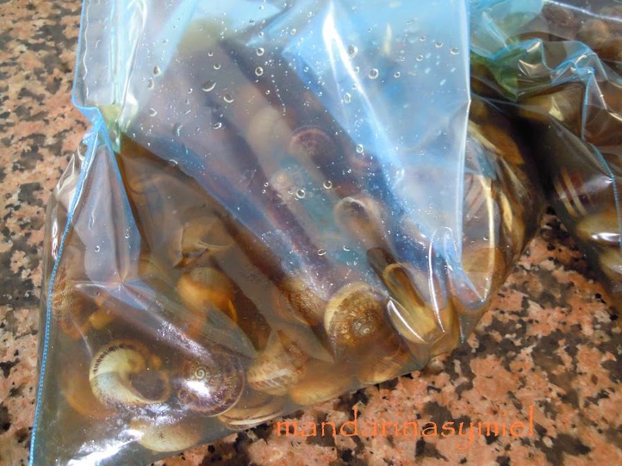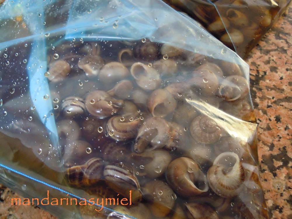 Los caracoles primero de todo se tienen que purgar, eliminar todos los elementos tóxicos que llevan dentro y que son perjudiciales para el hombre, purgar los caracoles no quiere decir que eliminen sus babas, estas se eliminan con la limpieza.