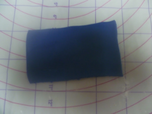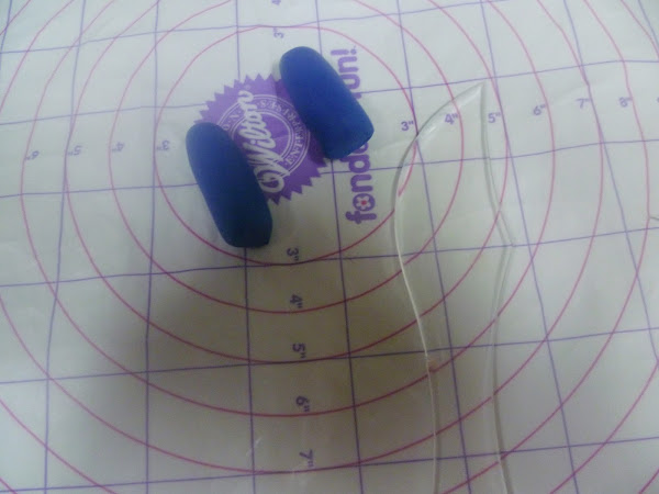 ahora haremos 1 rollito de color azul que cortaremos a la mitad con una esteca o un cuchillo para las piernas