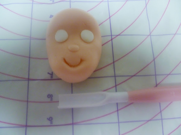 Utilizando una herramienta de abre boca marcaremos la sonrisa del personaje y pegaremos dos bolitas de masa para los ojos