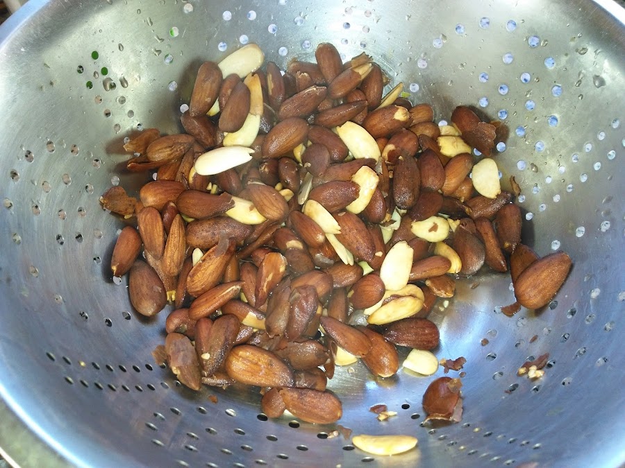 Ponemos el agua a hervir y cuando lo haga añadimos las almendras, removemos un poco y dejamos durante 2 minutos, no más