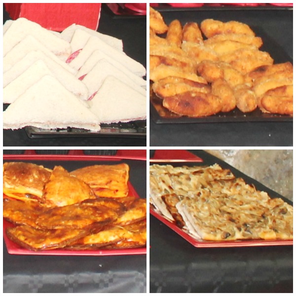 Como no solo de dulce vive el hombre (la mujer puede ser que si), puse también algunas cosas saladas, los tradicionales sandwichs, croquetas, coca de champiñones y empanada.