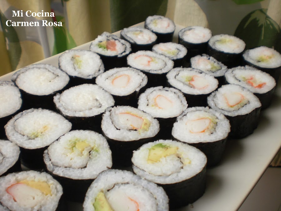 Generalmente suelo hacer maki sushi…..aunque ha habido veces que he optado por el nigiri sushi o sushi amasado…..que es el que se le coloca encima del arroz, una lámina de pescado e incluso mariscos…