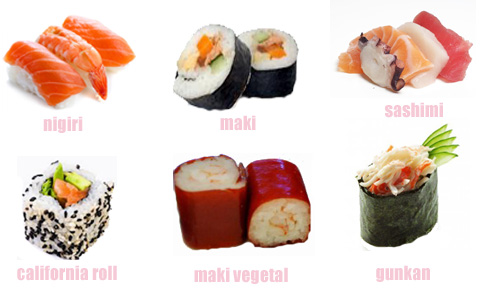 Existen diferentes tipos de sushi, los cuales se presentan de forma distinta: ovalado, enrollado, prensado e incluso suelto. Y a pesar de que en occidente se identifica al sushi con pescado o marisco crudo, éste plato a base de arroz se puede preparar con infinidad de ingredientes que por otro lado, tampoco tienen que ser necesariamente crudos.