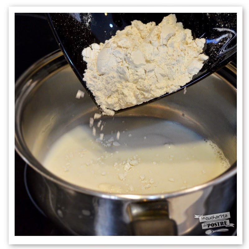 7. Añade poco a poco la crema de harina y sigue batiendo hasta integrarlo todo bien.