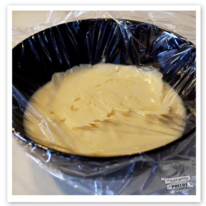 4. Cubre con papel film en contacto directo con la crema y deja enfriar por completo.