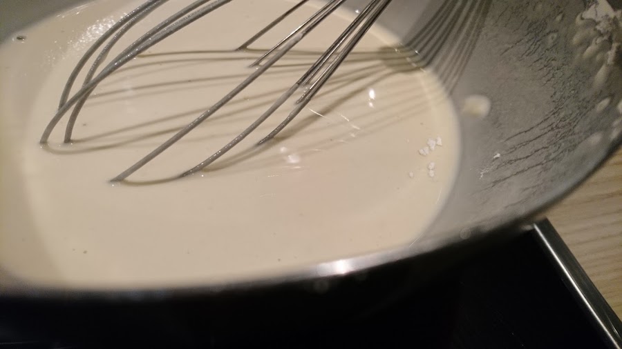 Vamos añadiendo la cerveza poco a poco mientras vamos removiendo la mezcla con unas varillas. Nos tendrá que quedar una masa sin grumos.