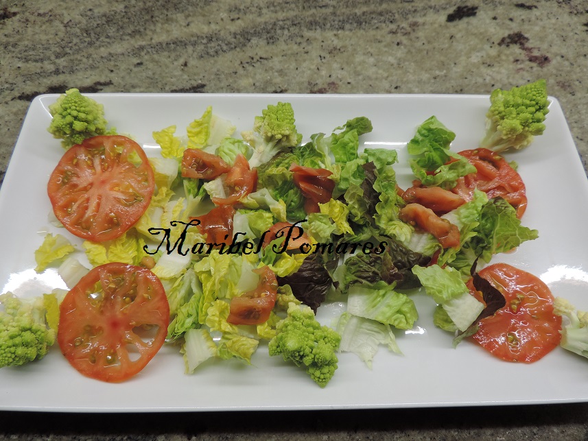 El tomate en rodajas ó trocitos comos nos guste más y la romanesca.