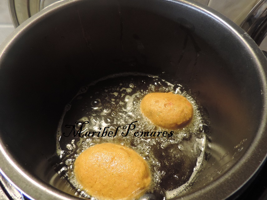 Cuando el aceite esté caliente, los vamos echando dentro con la ayuda de una rasera, para dejarlos con cuidado, de no quemarnos y que no se deformen.