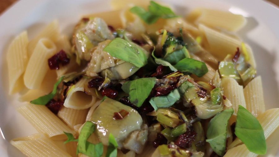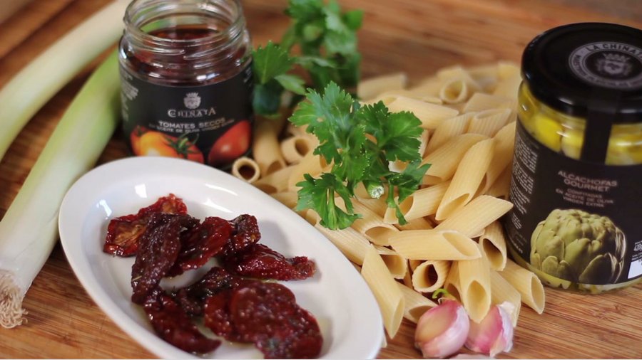 Te vamos a mostrar lo fácil que es darle un toque de lo más 'gourmet' a unos macarrones y sin pasar horas en la cocina. Para ello vamos a usar dos conservas en aceite de oliva virgen extra de La Chinata: unas alcachofas confitadas y unos tomates secos. ¿A qué te apetece probar esta receta?