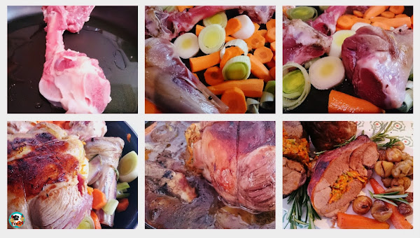 Pierna de cordero rellena, elaboración: